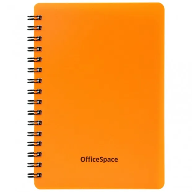 Записная книжка А6 60л., на гребне OfficeSpace "Neon", оранжевая пластиковая обложка