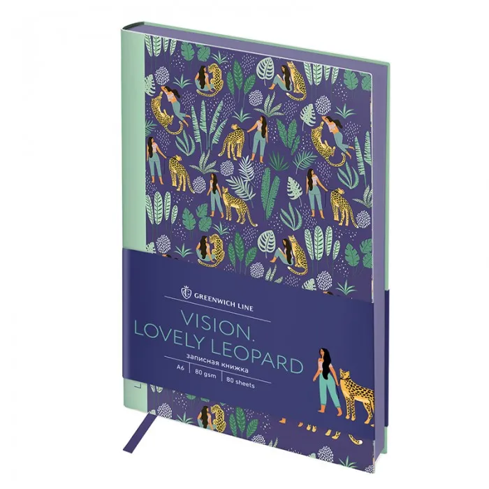 Записная книжка А6 80л., ЛАЙТ, кожзам, Greenwich Line "Vision. Lovely leopard", тон. блок, цв. срез