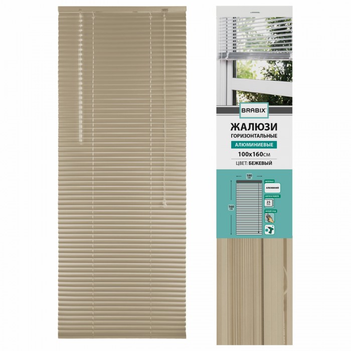 Жалюзи горизонтальные BRABIX 100х160 см, АЛЮМИНИЙ, цвет бежевый, 608643