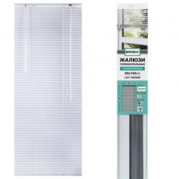 Жалюзи горизонтальные BRABIX 50х160 см, АЛЮМИНИЙ, цвет белый, 606032