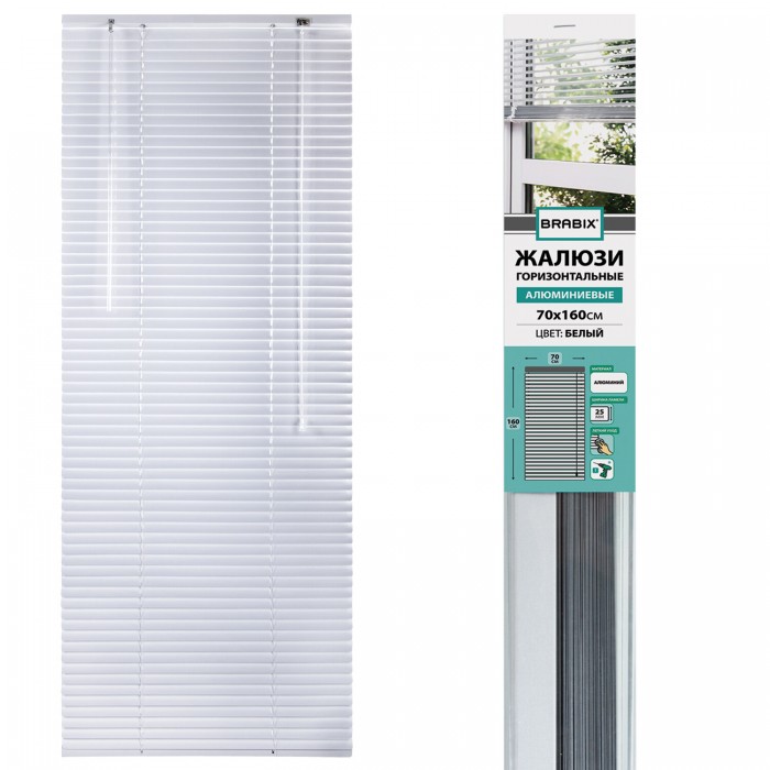 Жалюзи горизонтальные BRABIX 70х160 см, АЛЮМИНИЙ, цвет белый, 606036