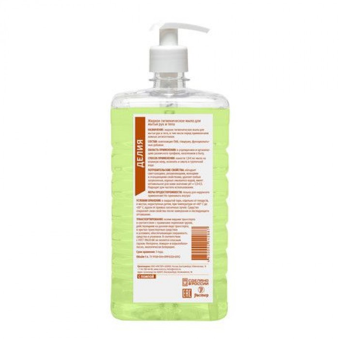 Жидкое мыло "Делия" с экстрактами череды и василька, 1 л с помпой (ПЭТ)