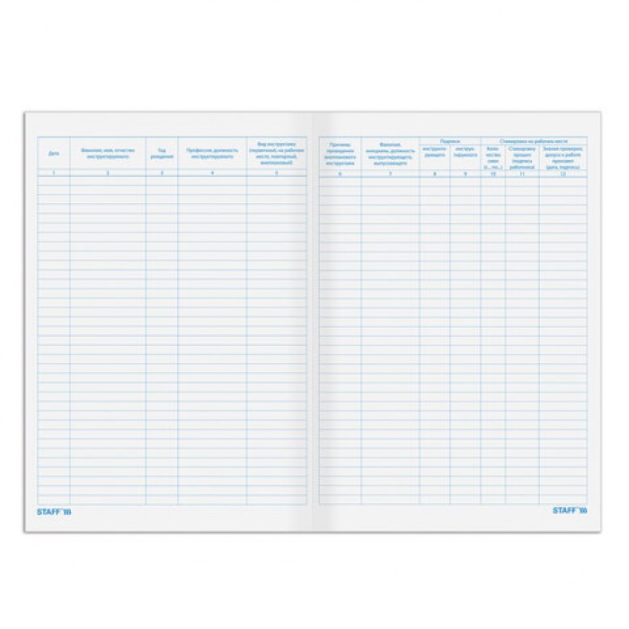Журнал регистрации инструктажа по технике безопасности, 96 л., картон, типографский блок, А4 (200х290 мм), STAFF, 130241