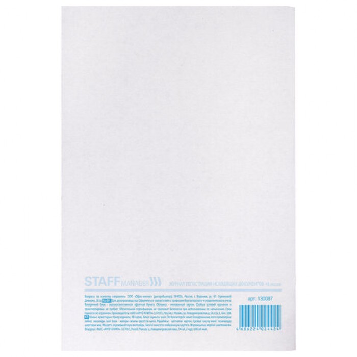 Журнал регистрации исходящих документов, 48 л., картон, офсет, А4 (200х290 мм), STAFF, 130087