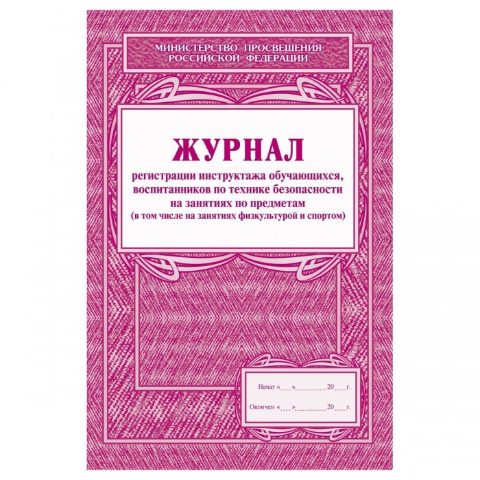 В журнале регистрации инструктажа обучающихся, воспитанников по технике безопасности на занятиях по предметам (в том числе на занятиях физкультурой и спортом) фиксируется факт проведения инструктажа обучающихся на занятиях по предметам в общеобразовательной организации. Особые требования к соблюдению обучающимися норм охраны труда предъявляются на занятиях по предметам с повышенной опасностью: физика, химия и технология, информатика, физическая культура и занятия спортом. В данном журнале осуществляются записи проведения вводного, первичного и повторного, внепланового и целевого инструктажей по охране труда, инструктажей при работе с конкретными приспособлениями и устройствами, оборудованием, электроприборами и материалами. Инструктажи проводятся с обучающимися на первом уроке по новой теме; перед лабораторной работой; перед выполнением работ с новым оборудованием, приборами и инструментами. Школьники расписываются в журнале инструктажей начиная с 14 лет. Записи о проведённых инструктажах заносятся в журнал регистрации инструктажей сразу после их проведения и проверки знаний инструктируемого. Журнал регистрации инструктажа обучающихся, воспитанников по технике безопасности на занятиях по предметам (в том числе на занятиях физкультурой и спортом) содержит перечень инструкций, графы: фамилия, имя, отчество инструктируемого, дата его рождения, класс/группа, номер инструкции и краткое содержание инструктажа, дата проведения инструктажа, фамилия, имя, отчество проводившего инструктаж и подпись. Адресован педагогам, заместителям руководителя общеобразовательной организации.