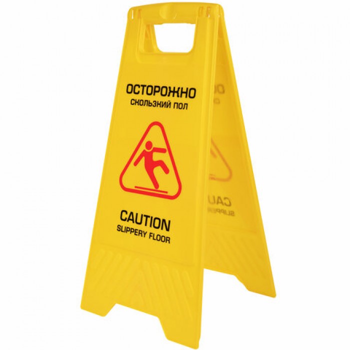 Знак предупреждающий "Осторожно! Скользкий пол!" LAIMA PROFESSIONAL предназначен для привлечения внимания и обеспечения безопасности в местах массового скопления людей. Выставляется при проведении влажной уборки.